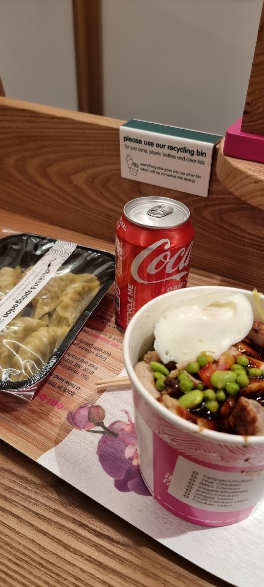 “Food was very tasty and hot but tiny portion of chicken soup with boiled egg for £7-25 eat in. Soup was spilled down side of the takeaway cup and kind of reflected the generally messy tables and untidy feel to the place. It was Friday afternoon around 5. Self service and little interaction with staff, so service neutral.”